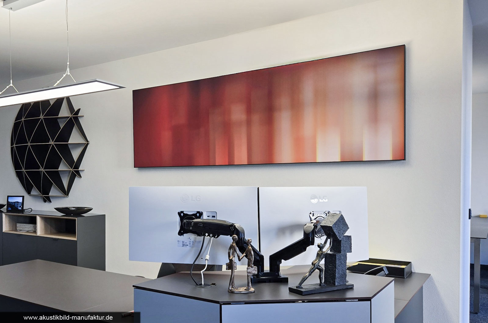 Blättern Sie durch die Beispiele, lassen Sie sich inspirieren – und stellen Sie sich vor, wie Ihr eigener Raum mit einem Akustikbild aussehen könnte. Gern unterstützen wir Sie mit Inspiration in einem kurzen Austausch oder einer handfesten Look-Visualisierung.