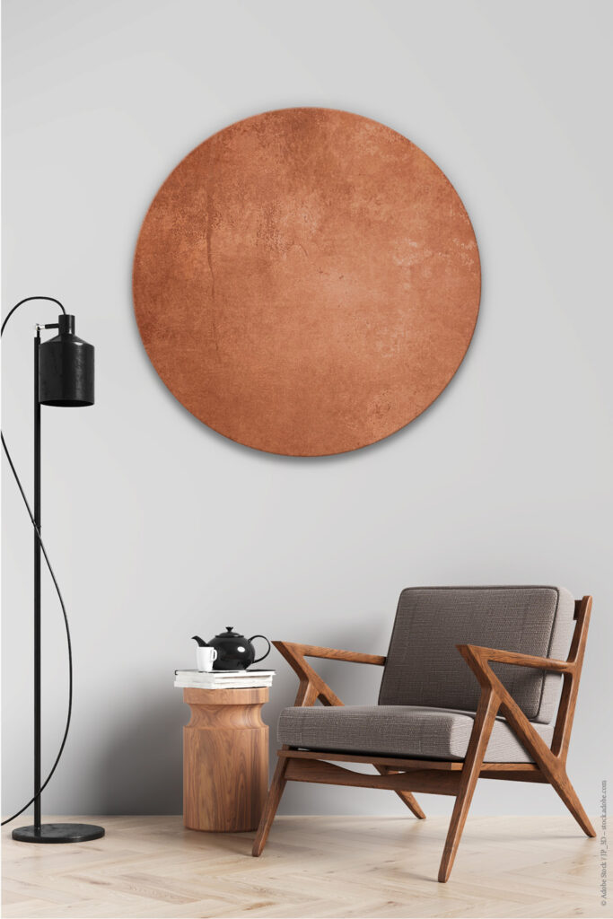→ Weiter zum Produkt bzw. Beitrag: Rundes Akustikbild Abstrakt Kupfer – Variante 4