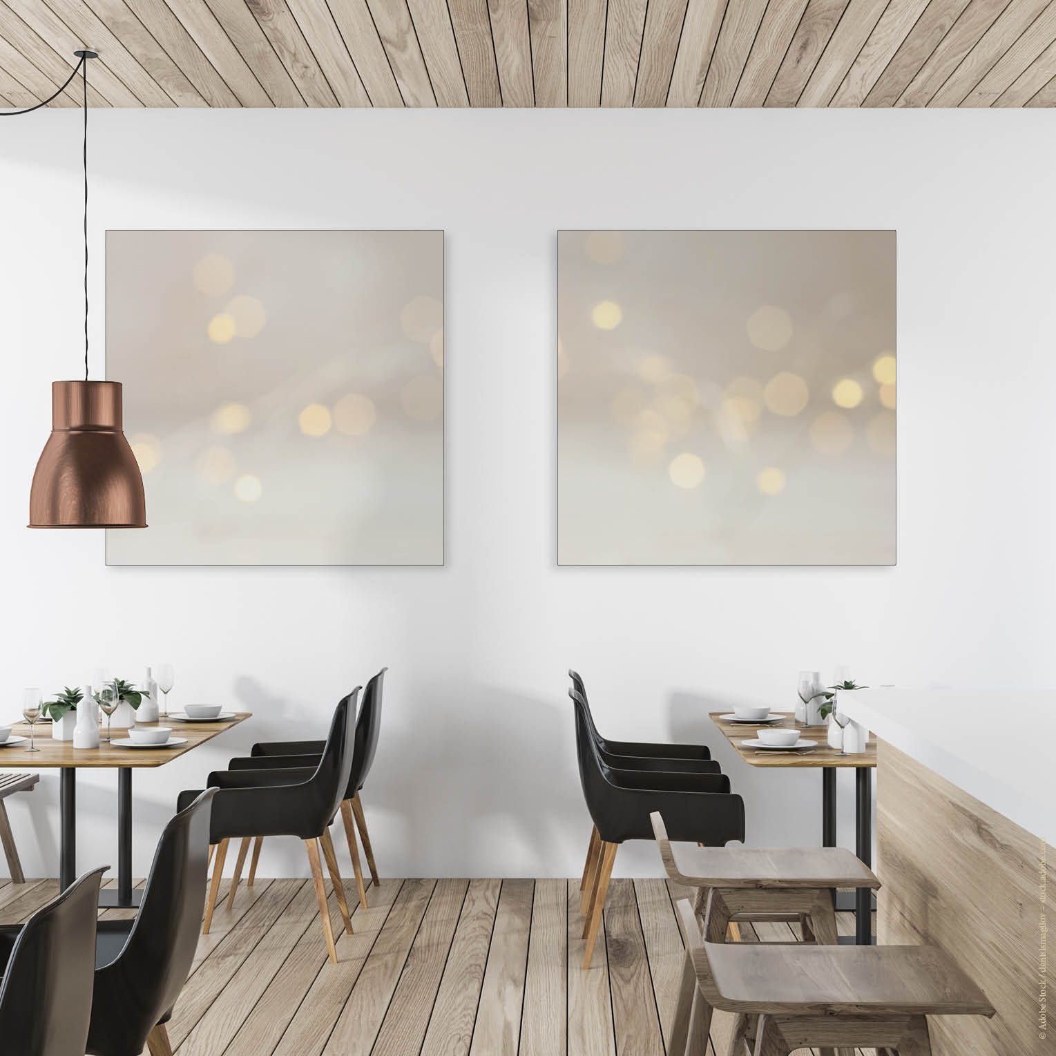 | Räume >35 qm | Kombinieren Sie mehrere Akustikbilder mit Deckensegeln oder Deckenplatten |