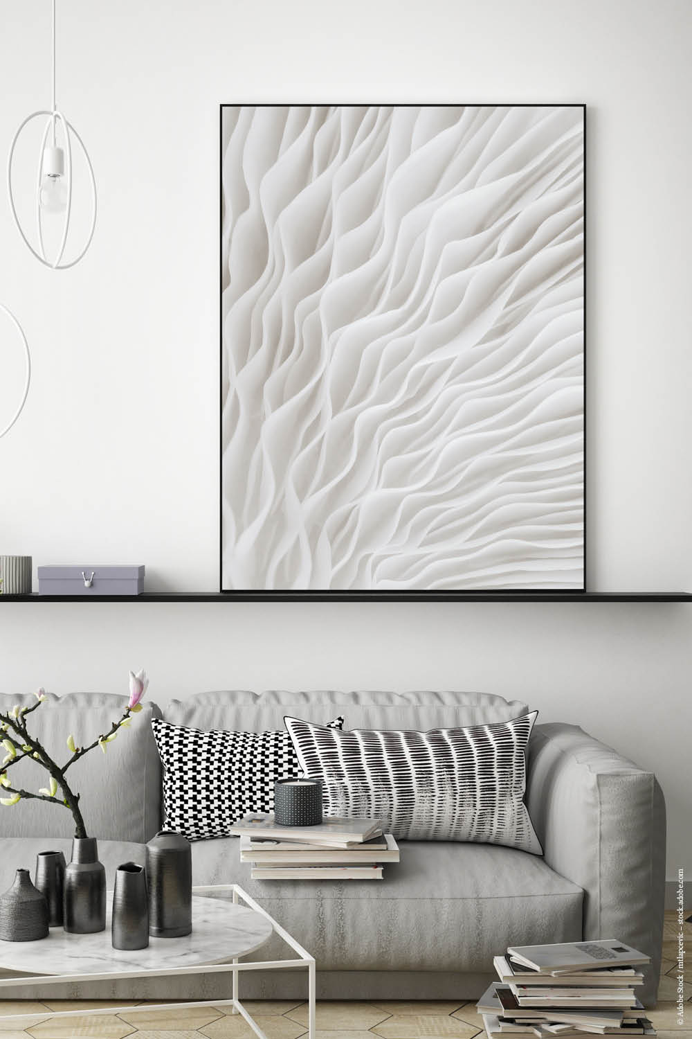 Am besten platzieren Sie das Akustikbild gegenüber oder hinter der Schallquelle. Typische Orte sind gegenüber oder hinter einem Schreib- oder Esstisch. Noch besser wirken mehrere Elemente an verschiedenen Wänden. Je besser die Platzierung, desto größer der Effekt – besonders, wenn nur ein Bild geplant ist.