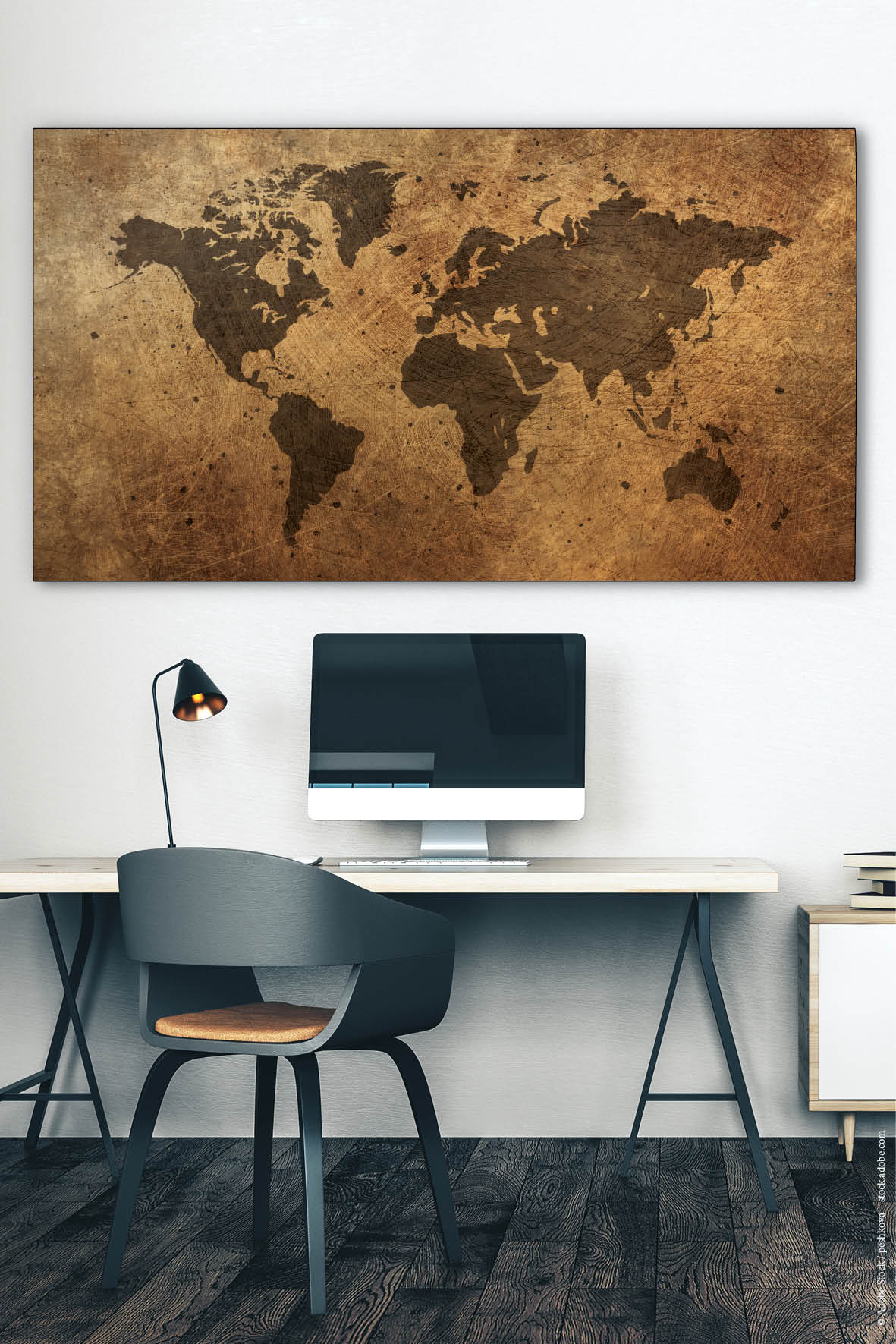 Sie sind hier: Akustikbilder mit Motiven » Akustikbilder mit Weltkarten » Akustikbild Weltkarte Schwarz auf Kupfer