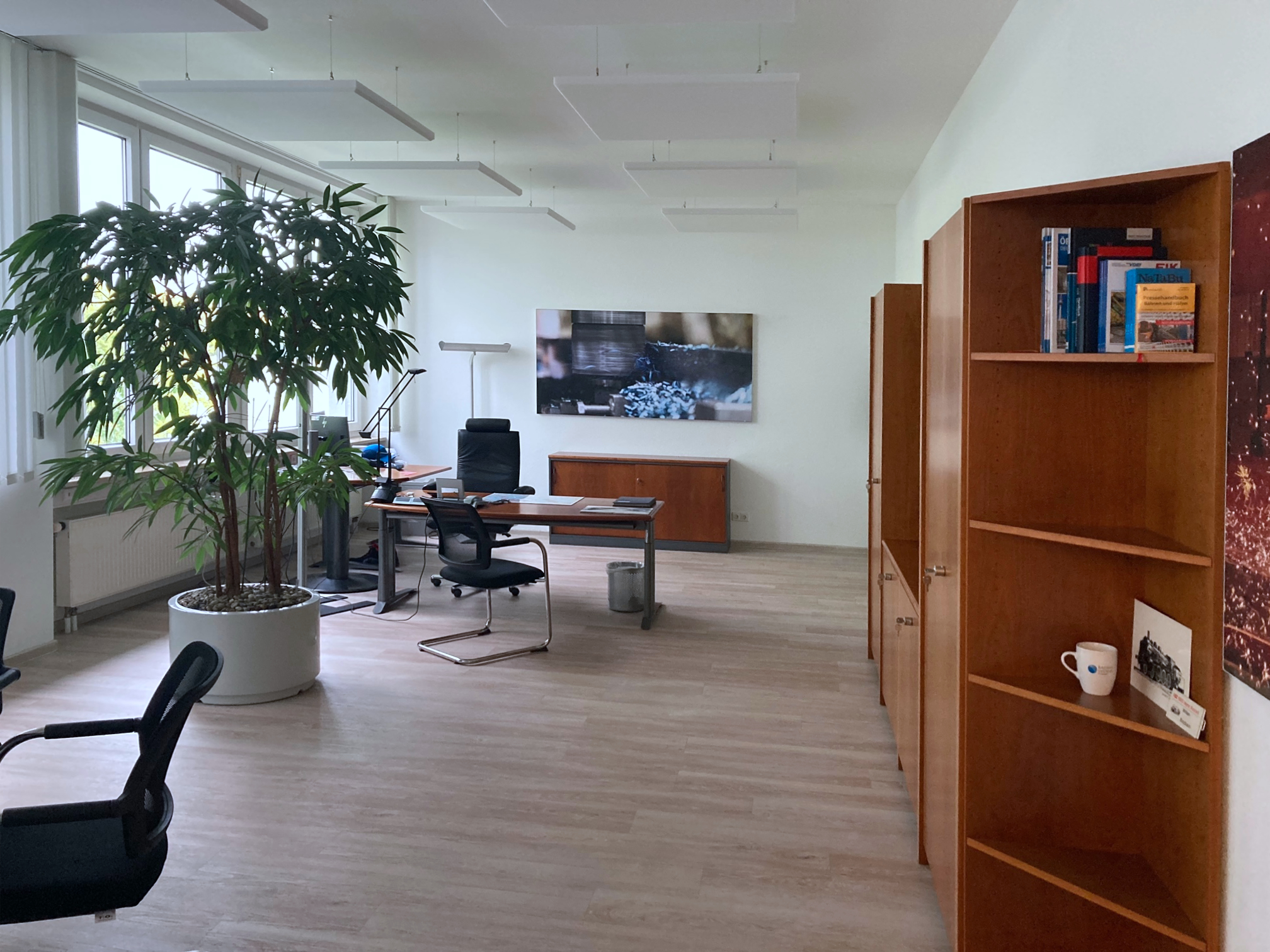 Die Deckensegel bestehen aus hochwertigem Basotect®, einem besonders leichten und leistungsstarken Akustikschaum. Dieses Material ist bekannt für seine sehr guten Absorptionswerte im mittleren und hohen Frequenzbereich – dort, wo Sprache und Störgeräusche besonders häufig auftreten. Durch die Montage an der Decke wirken die Segel gezielt gegen Reflexionen von oben und verbessern das Raumklima nachhaltig. Ein unsichtbarer Montagerahmen auf der Rückseite sorgt für Stabilität, ohne das Erscheinungsbild zu stören.