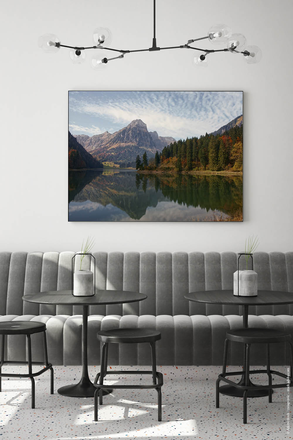 Räume >35 qm | Kombinieren Sie mehrere Akustikbilder mit Deckensegeln oder Deckenplatten |