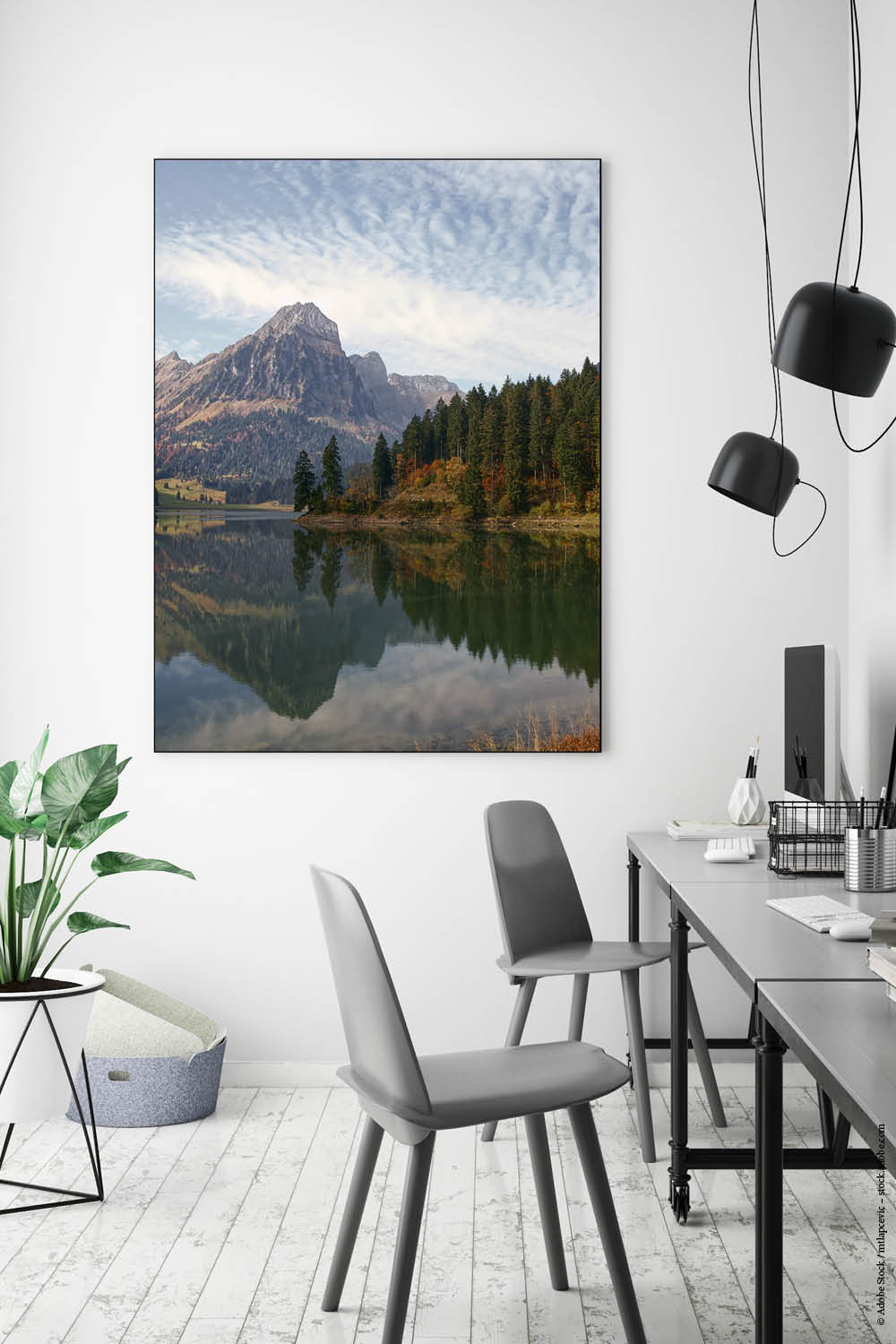Am besten platzieren Sie das Akustikbild gegenüber oder hinter der Schallquelle. Typische Orte sind gegenüber oder hinter einem Schreib- oder Esstisch. Noch besser wirken mehrere Elemente an verschiedenen Wänden. Je besser die Platzierung, desto größer der Effekt – besonders, wenn nur ein Bild geplant ist.