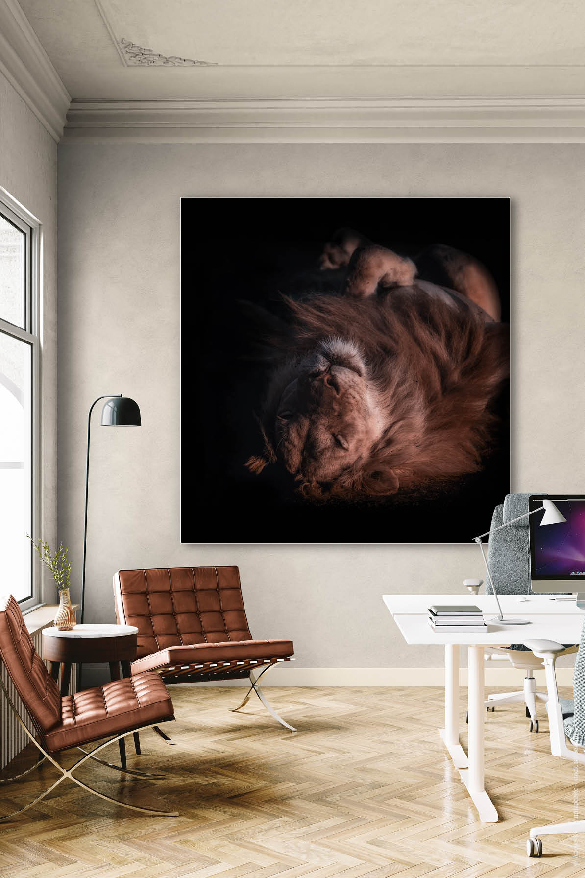 Einfaches Aufhängen wie ein klassisches Wandbild an 2 Haken. Sie erhalten hierfür von uns hochwertige Universaldübel und Schraubhaken.