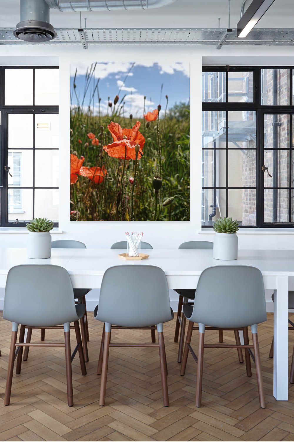 Räume >35 qm | Kombinieren Sie mehrere Akustikbilder mit Deckensegeln oder Deckenplatten |