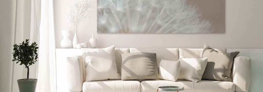Akustikbilder sind eine effektive Möglichkeit zur Raumgestaltung – besonders dann, wenn man die Akustik im Wohnzimmer verbessern möchte, ohne bauliche Maßnahmen vorzunehmen. Sie können etwas tun gegen Hall im Wohnzimmer.